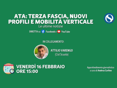 L’appuntamento è per venerdì 16 febbraio alle 15:00, in diretta sui canali Facebook e YouTube con il Question Time di Attilio Varengo (Segretario Nazionale Cisl Scuola). Conduce Andrea Carlino.