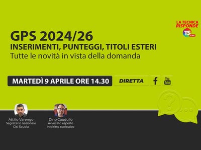 Tutte le novità riguardanti l’aggiornamento delle GPS sono al centro della diretta di oggi, 9 aprile, di “La Tecnica risponde“, in onda a partire dalle ore 14.30 sui canali YouTube e Facebook della rivista “La Tecnica della scuola“.
