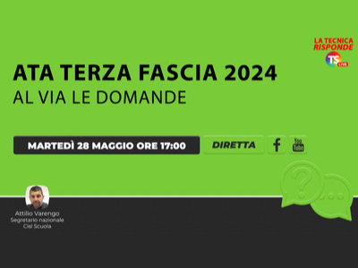 Oggi, lunedì 27 maggio, alle 16:00, durante il question time di Orizzonte scuola il segretario nazionale della CISL Scuola Attilio Varengo presenterà tutte le novità introdotte nella compilazione delle domande per la III fascia ATA.